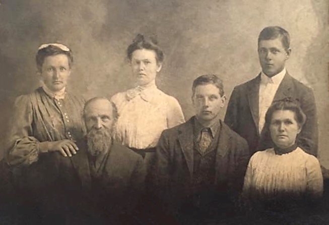 Royal Merit Root’s family, back; May (Root) Ryan, Rosie (Root) Cook & Charley Root Front; Royal Merit Root, Harley C. Root & Mary Ellen (Horner) Root. Della Bailey collection