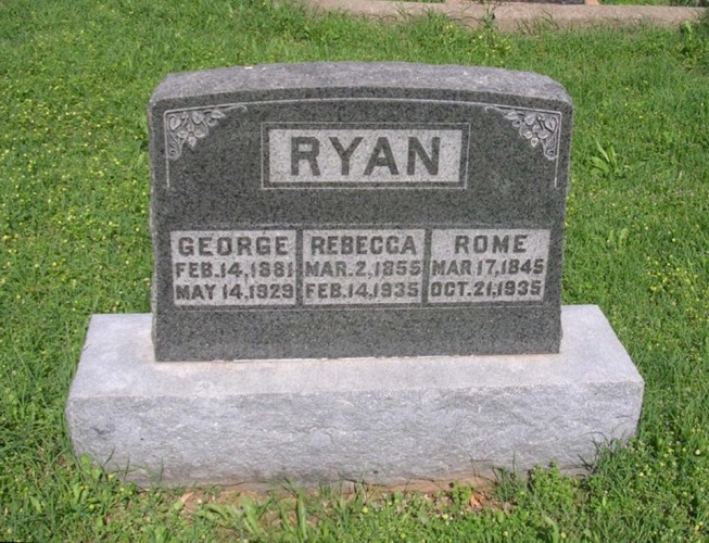 Jerome Bonapart “Rome” Ryan, Rebecca Emilina Ragan & son Geroge L. Ryan stone on Find A Grave from bob hampton.