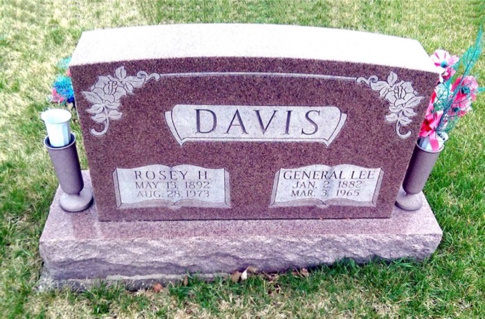 General Lee Davis & Rosey Hurt stone on Ancestry from HistoryAnne.