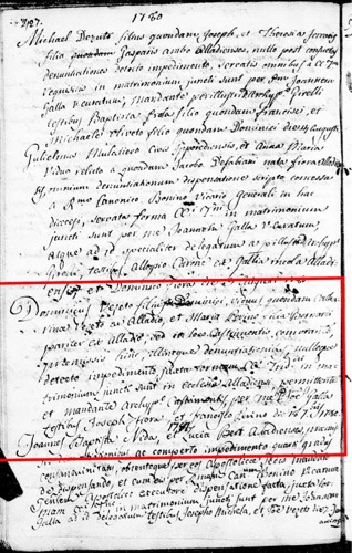 Domenico Antonio Vezzetti & Maria Margarita Perino marriage 1780
