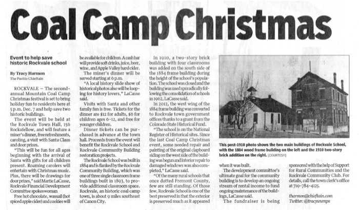 Coal Camp Christmas. A little of the history about Rockvale, Colorado. A number of the Goglio family went to this school, particularly the small white building on the left. The Goglio family lived just down the street from this school. Rockvale was near the CF&I mines where all the Trabuccos, Frullo’s and Goglio’s worked.