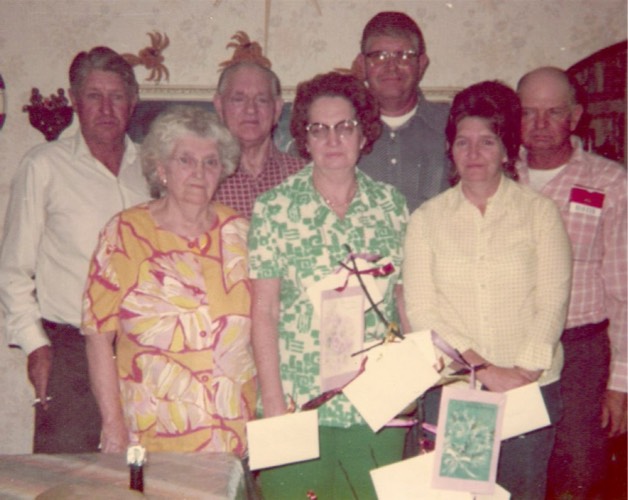 Back Row - Madeline J. (Barnett), Doyle Johnson, Shirley J (Shrank), Buddy Johnson, Eugene Johnson Front Row - Roea (Ryan) Johnson, William Johnson (papa) in William Henry Johnson's home 142 Idaho Ave Pueblo, CO