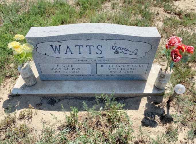 Elmer Gene Watts & Betty Ilene Griswould stone