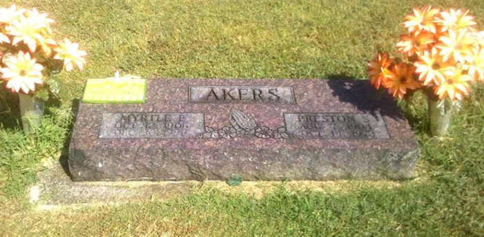 Myrtle Emma Root & Preston Starrits Akers stone on Ancestry from Tess.