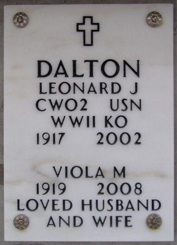 Leonard Joseph Dalton & Viola M. Valenzano plaque on Find A Grave from Jon Verdick.