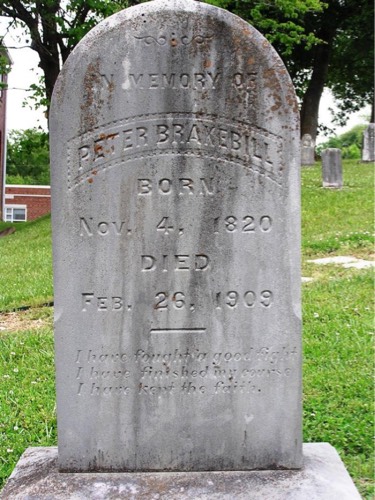 Peter Brakebill (1820-1909) stone on Ancestry from Stacy Wilson.