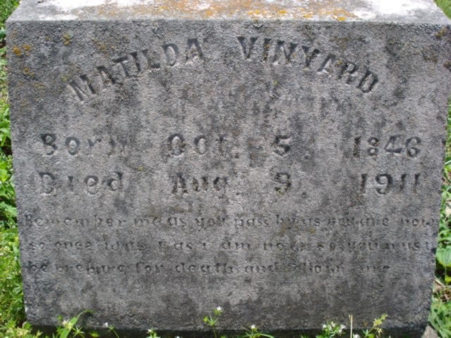 Matilda Eveline Vineyard stone from Find A Grave from Robin Marshall.