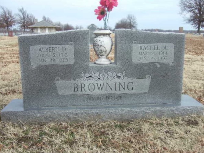 Albert De Vault Browning & Rachel Aurora Johnson stone on Ancestry from Charles Swann.