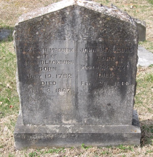 Elizabeth McGuirk & John Blackburn stone on Find A Grave from Marvin & Samme Templin.