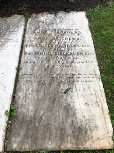 Samuel Blackburn & Anne Matthews stone on Find A Grave from Dave.