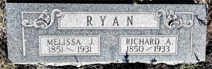 Richard Ryan & Melissa Jane Clelland stone on Find A Grave from Susan B.