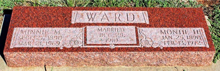 Monte Homer Ward & Minnie Mae Moad stone on Find A Grave from Ron Roberson.