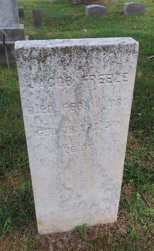 Jacob Freese 1880 stone on Find A Grave from MEdwords.