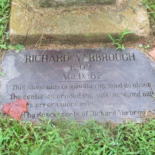 Richard Christian Yarbrough stone on Ancestry from TobieAnnDavis. “This stone was originally engraved as above. The centuries eroded the soft stone and with repairs errors were made. Dedicated by the descendants of Richard Yarbrough. Thanks those who cared enough to leave this plaque.”