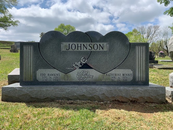 Edd Hawkins Johnson & Katherine Minnis stone on Find A Grave from Hutton Monument Company.
