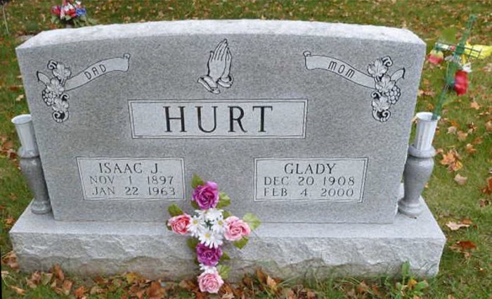 Isaac J. Hurt & Glady M Hess stone on Find A Grave from ootdigger193.