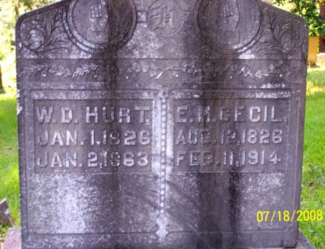 William Darby Hurt Jr. & Elizabeth McGuire stone on Find A Grave from Sue Lapp.