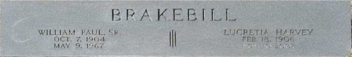 William Paul Brakebill & Lucretia Ella Harvey stone