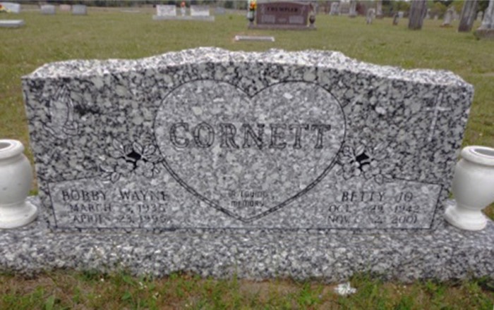 Bobby Wayne Cornett & Betty Jo Myers stone on Find A Grave from Jim Nelson.