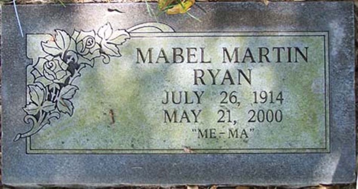 Mabel Louise Martin stone on Find A Grave from James A Gamblin.