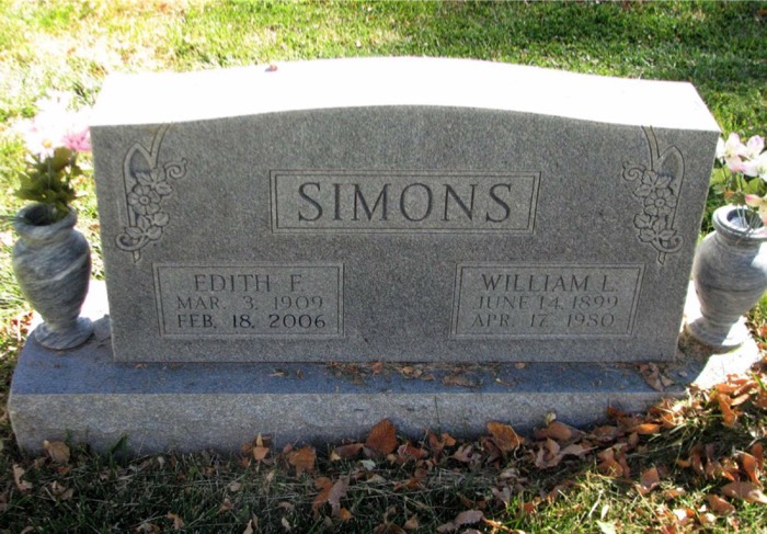 William Leo Simons & Felectia Edith Fay Harvey stone on Ancestry from Robbin Amado-Robinson.