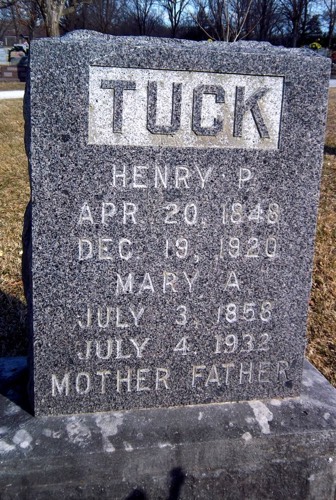 Henry Philo Tuck & Mary Ann Fitzgerald stone on Ancestry from Frederic Martin.