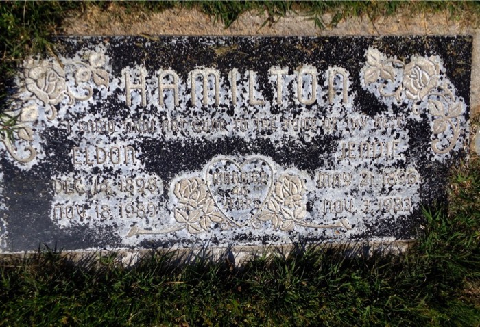 Eldon James Hamilton & Jennie Terrill stone on Find A Grave from Henry Webber.