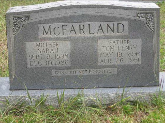 Tom Henry McFarland & Sarah Susan Johnson stone on Ancestry from katiegibson999