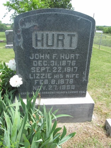 John F. Hurt & Elizabeth M. "Lizzie" Thompson stone on Find A Grave from Julie Leek.