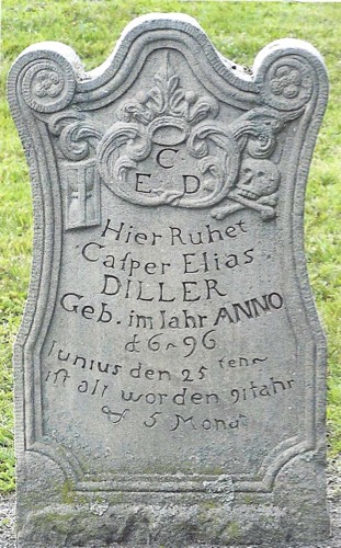 Casper Elias Diller stone on Ancestry from Auntie Scramper.