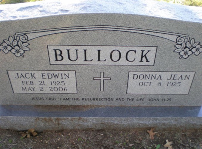 Jack Edwin Bullock & Donna Jean Doennecke stone on Find A Grave from Phil Harris.
