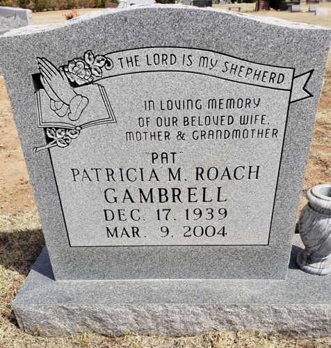 Patricia Mae Roach stone on Find A Grave from Elliot Farnsworth.