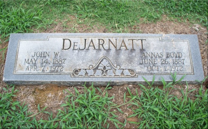 John Woodville De Jarnatt & Annie Johnson stone on Find A Grave from Tammy Anne Beckett.