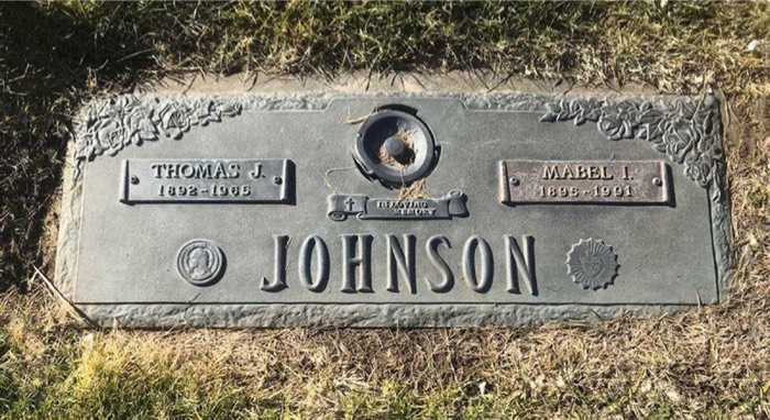 Thomas James Johnson & Mabel I. Pierce stone on Ancestry from Angeline Nixon.