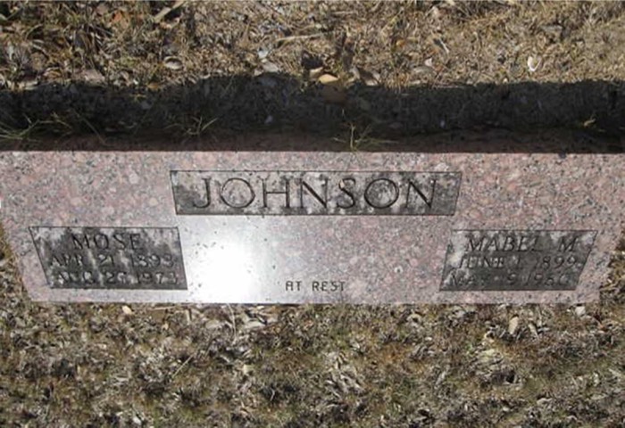 Moses “Mose” Johnson & Mable McMILLAN stone on Ancestry from PatSmithPetty.
