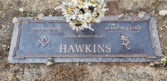 John Leach Hawkins & Jerry Ruethel Berry stone on Find A Grave from Janie Healer Davis.