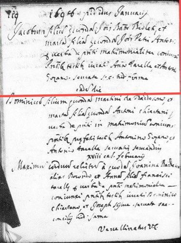 Giovanni Giacomo Bioletto & Martha Antonio marriage 1698 on Ancestry from Bonnie Vaccaro.
