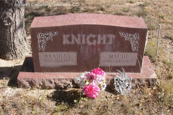 William Bradley Knight & Maude Overfield stone on Find A Grave from John C. Irish.