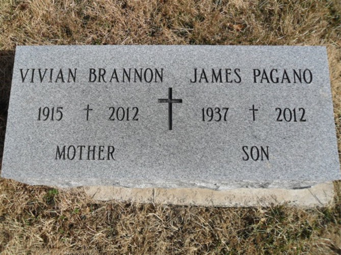Vivian Grace Parlapiano & James Pagano stone on Find A Grave from K. Roberts Medved.