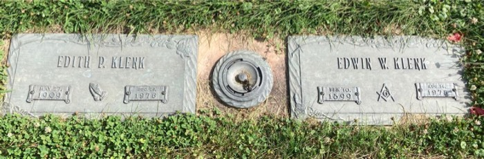 Edwin W. Klenk & Edith P. McCracken stone on Find A Grave from Sue.