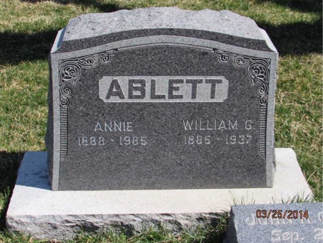William George “Willie” Ablett & Annie Coupe stone on Ancestry from LarryLCiet.