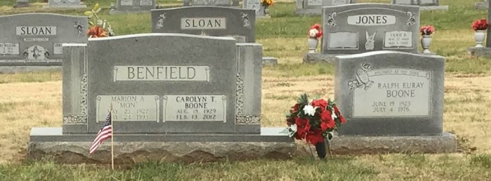 Carolyn Tuck & Marion Alexander Benfield & Ralph Euray Boone stone on Find A Grave from Peggy-O.