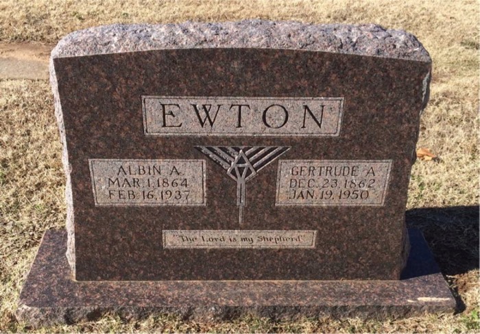 Albin A. Ewton & Gertrude A. Moyers stone on Ancestry from grdane03.
